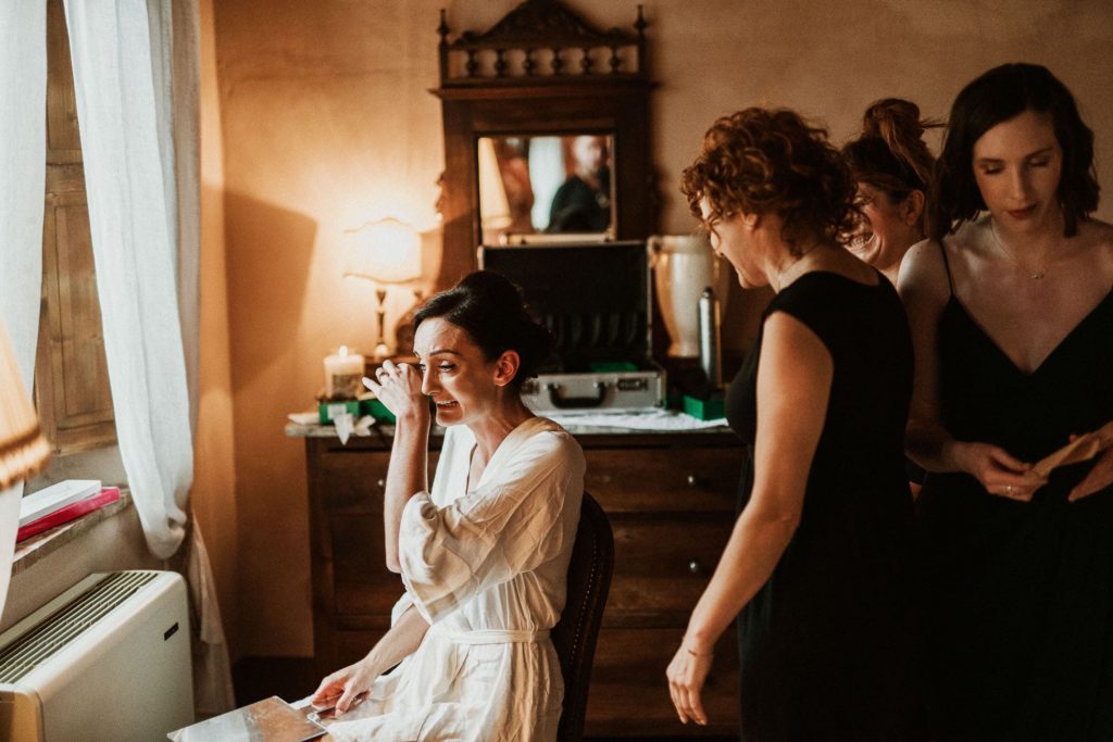 Poco prima del matrimonio la sposa ha scritto una lettera allo sposo e il momento in cui lo sposo l'ha letta ad alta voce (senza farsi vedere ma soltanto facendole sentire la sua voce) è stato molto profondo e sentito, tanto da far commuovere entrambi. Gli sposi hanno apprezzato tutti i luoghi del centro storico di Montepulciano e anche le sue bellissime campagne e i paesaggi incantevoli circostanti. Gli sposi sono stati seguiti da una wedding planner e tutto il loro soggiorno è stato raccontato con un minuzioso reportage fotografico. Ho potuto percepire il profondo sentimento che lega questi due ragazzi sin da subito e con le mie fotografie naturali e spontanee ho raccontato la loro storia d'amore e l'ho interpretata con immagini quanto più autentiche e naturali possibile, sia attraverso le fotografie che attraverso il wedding video e wedding trailer.