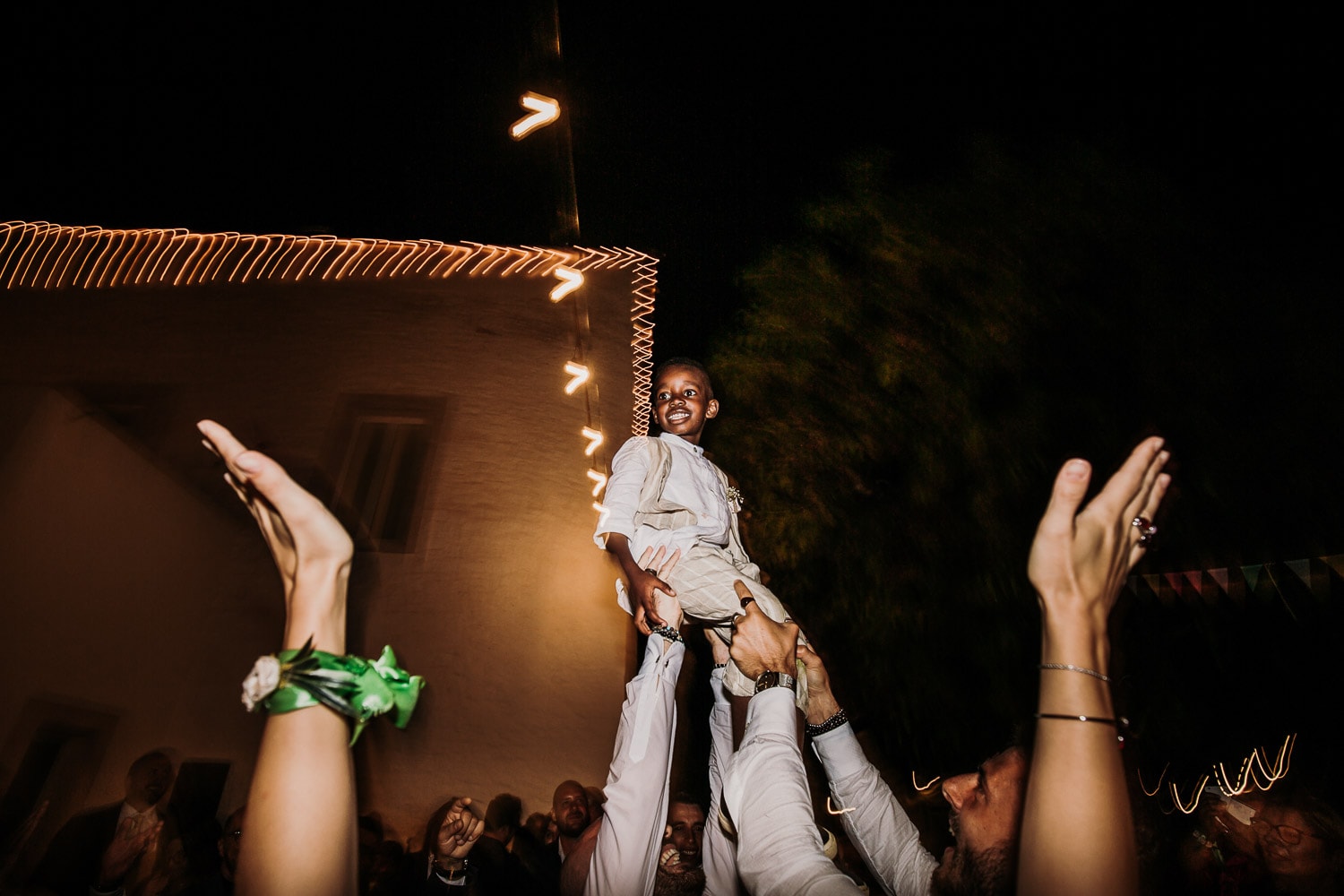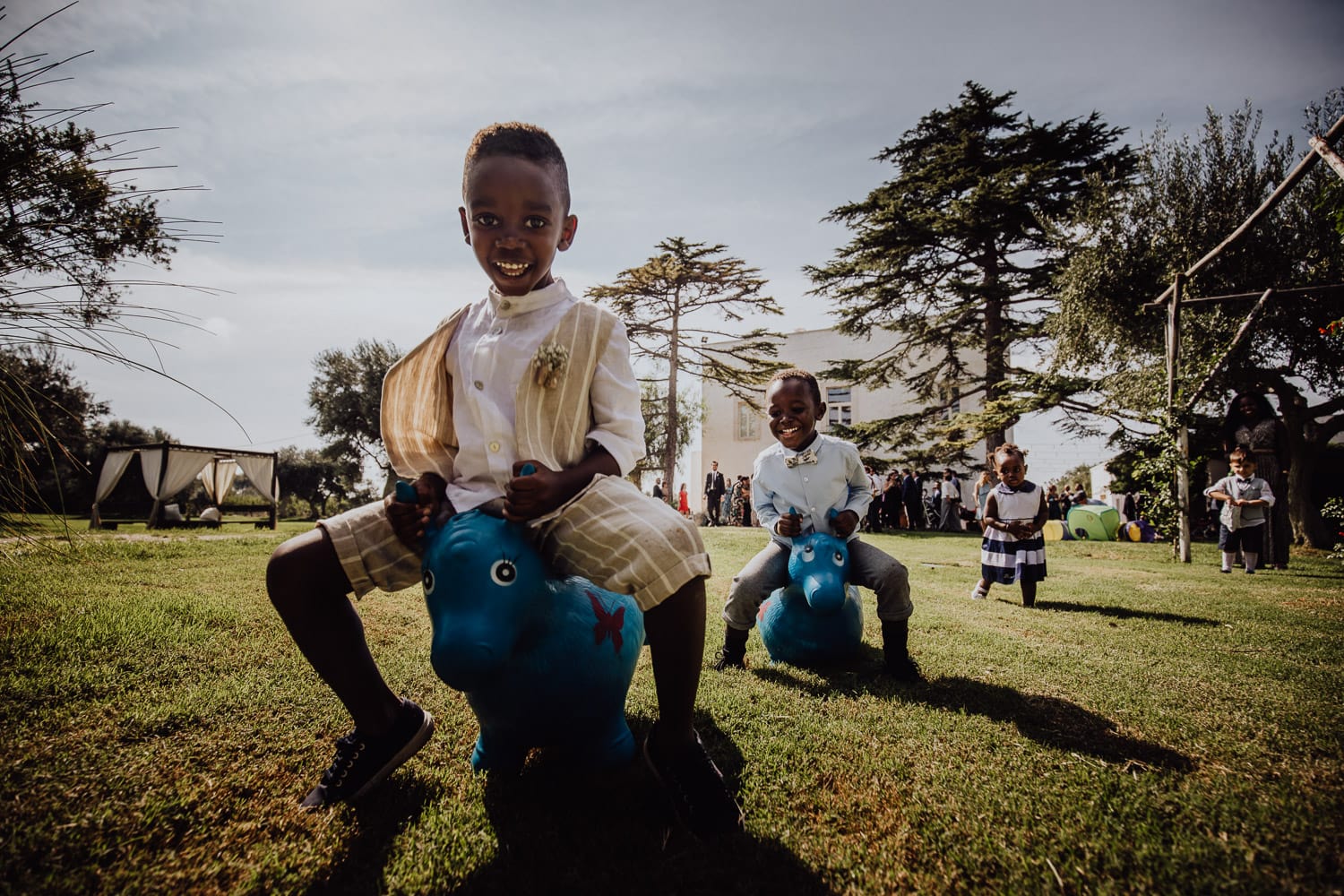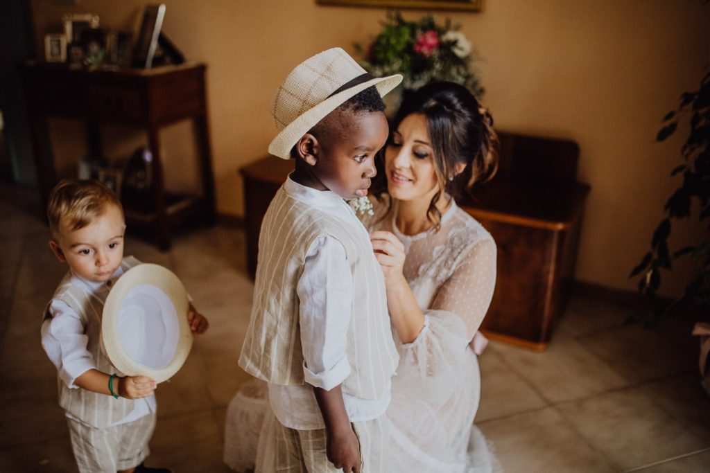... realizzato per una bellissima coppia di sposi davvero speciali. Quando sono venuti da me hanno raccontato di avermi scelto perché si sono subito sentiti a casa, per via della mia cultura, simile a quella di un bambino che hanno accolto nella loro famiglia, Saliou, un bimbo figlio di genitori senegalesi che loro amano proprio come se fosse il loro. Una tenerezza e un amore che vengono fuori in ogni scatto, una sincerità di sentimenti che mi capita di vedere di rado, proprio perché disinteressato. Anche questo è un matrimonio misto, gli invitati provengono da tutto il mondo e accompagnano gli sposi nel loro giorno più bello.